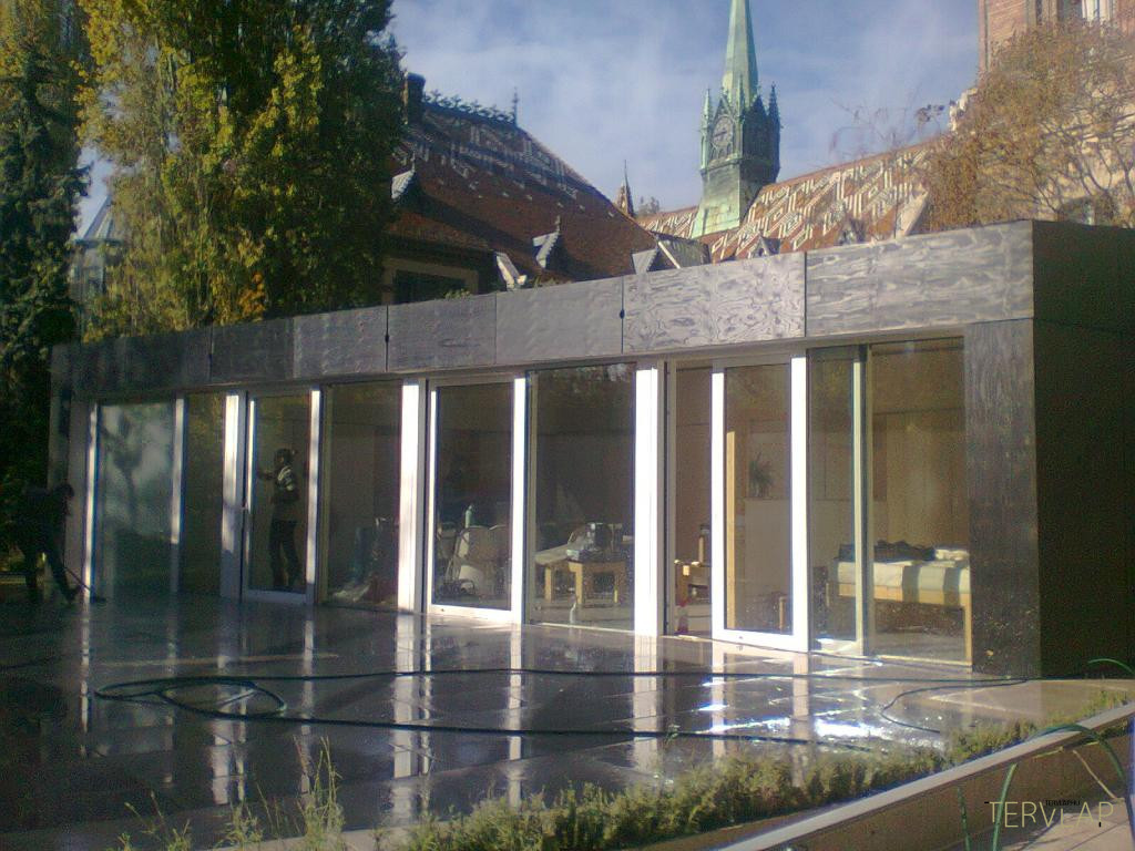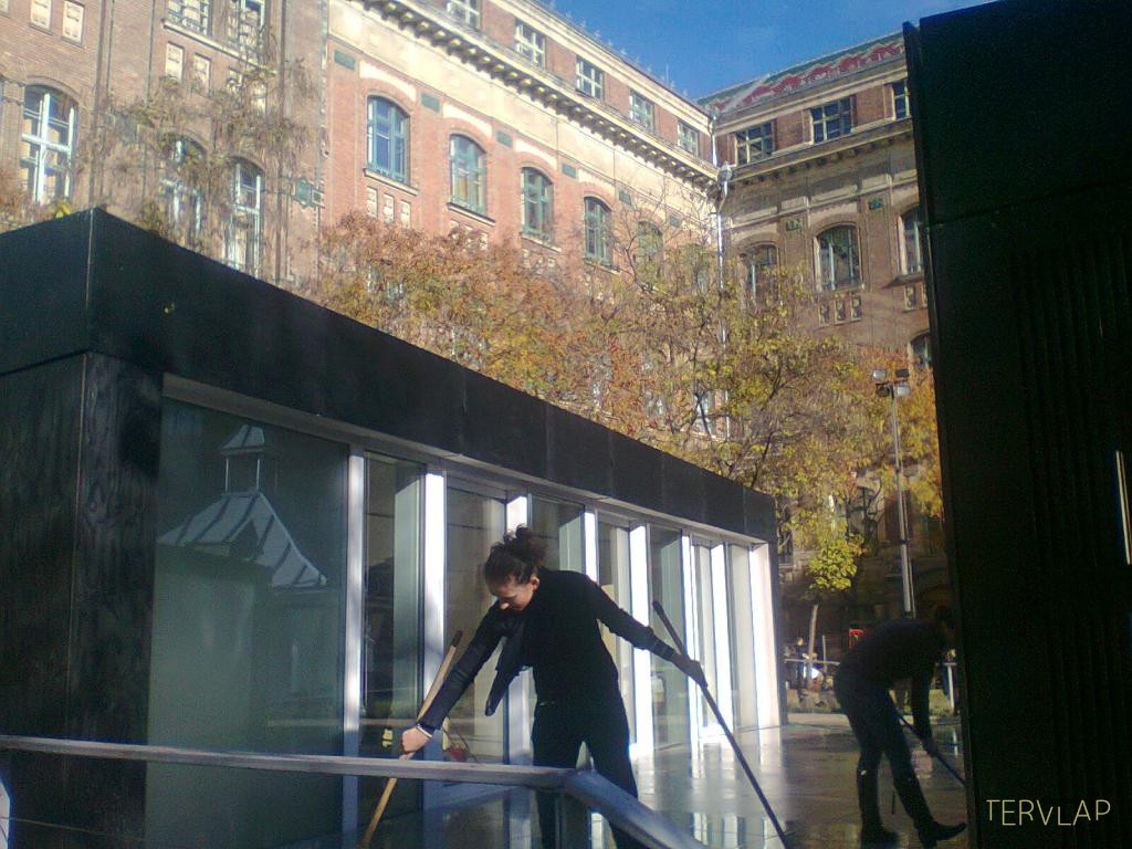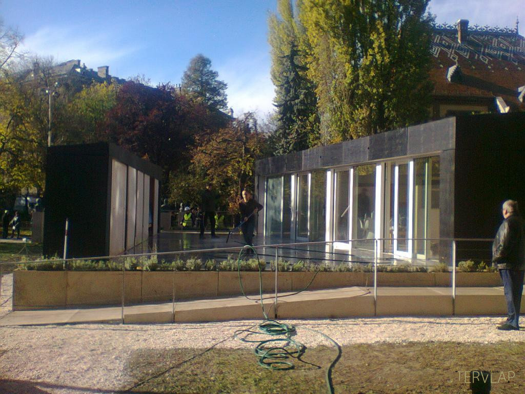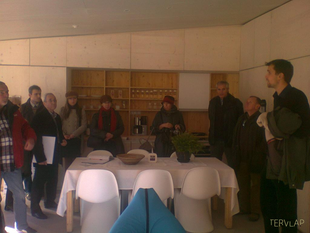 Sem a francia hatóságok (ahol a bürokrácia akasztotta el a hazafelé tartó épületelemeket), sem az időjárás nem fogadta kegyeibe a diákokat: a csúszás miatt a múltheti esős - sőt, olykor havas - időben kellett szerelniük, és az eső a rétegeltlemeznek sem tett jót: helyenként hullámos lett a burkolat. A sietségben pedig nem minden fugázás készült el a megnyitóra - még szerencse, hogy odakint Spanyolországban ilyen gond nem volt.