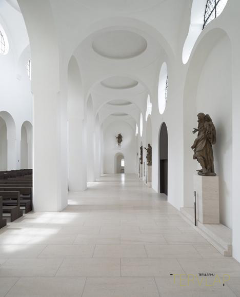 A németországi Augsburgban lévő Szt. Móritz templomot tűzvész, az építészeti stílusok fejlődése, a liturgia változása és háborús bombázások egyaránt alakították. Most a brit John Pawson vette kezelésbe és fogalmazta át a teret minimalista eszközökkel. A nemrégiben elkészült átalakítás eredményeképp letisztult fehér belső jött létre, melynek lágy könnyedségét a teret egyenletesen betöltő szórt fény teszi teljessé. A hatás eléréséhez vékony, fényáteresztő onix kőtáblák segítenek, melyek az árnyékhatés létrejöttét is csökkentik.