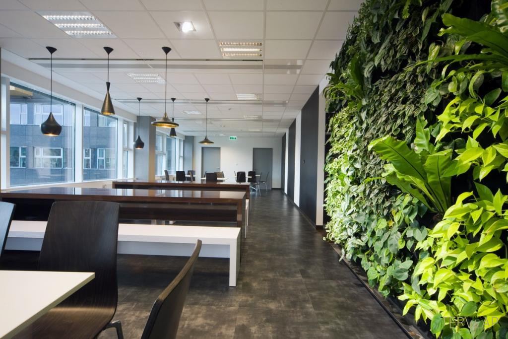 A második emeleten található étkező egyik falán maga a természet jelenik meg – egy növényfal képében. Az élőfal melletti falat fekete táblafestékkel festették, melyre akár írhatnak is a dolgozók. Az étkező melletti konyha beépített bútora Inox előlapú konyhagépeket rejt. A dolgozók kényelme érdekében nemcsak hűtőkkel és mikrohullámú sütőkkel szerelték fel a konyhát, hanem italautomatákkal is.