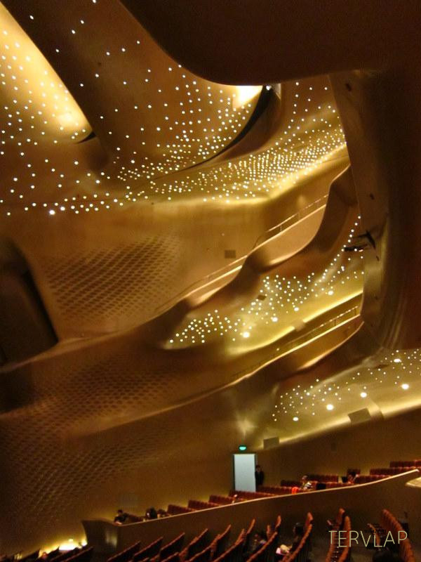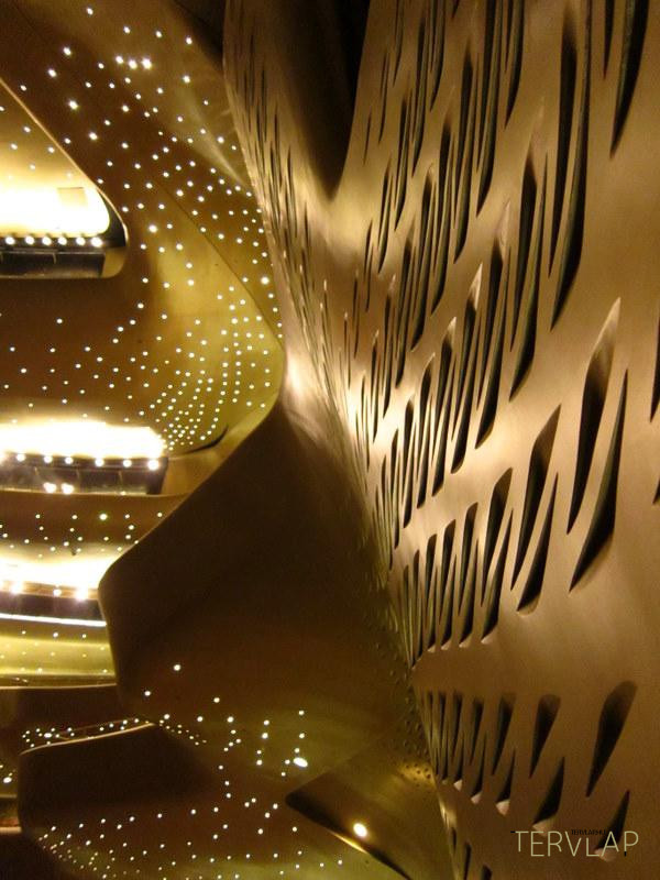 Az akusztika elképesztően jó, ilyen tökéletes minőséget még sosem hallottam. Kíváncsi lennék, vajon élőzenével is hasonló élményt nyújtana-e. Patricktől, a ZHA partner építészétől később megtudtam, hogy élőzenével is kiváló a hatás.