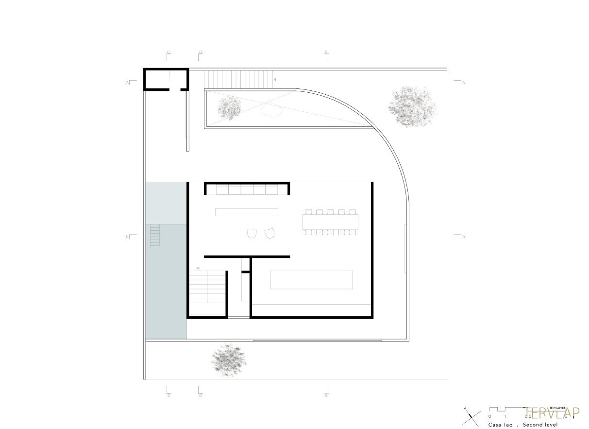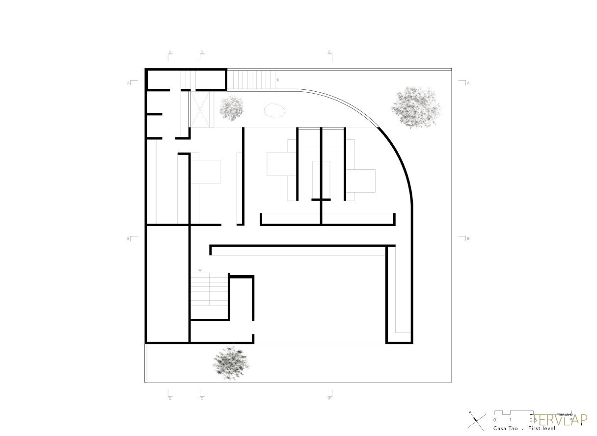 A Casa Tao nem csupán ház, hanem egy meghatározott életmódhoz igazodó belső világ. Az érkezés már egy átgondolt folyamat első lépése. Az ívelt fal és a kertben álló fa kompozíciója fogadja a látogatót, és nem a látványra, hanem a titkok feltárására invitál finoman.