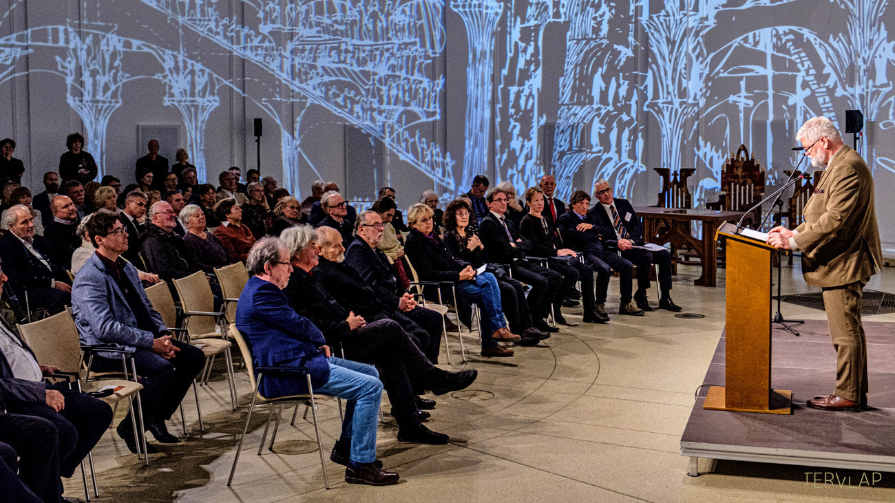 Turi Attila, a Magyar Művészeti Akadémia (MMA) elnöke. „Makovecz Imre házai az élő közösség lenyomatai lettek” - mondta a kiállítás megnyitó, üdvözlő beszédében.