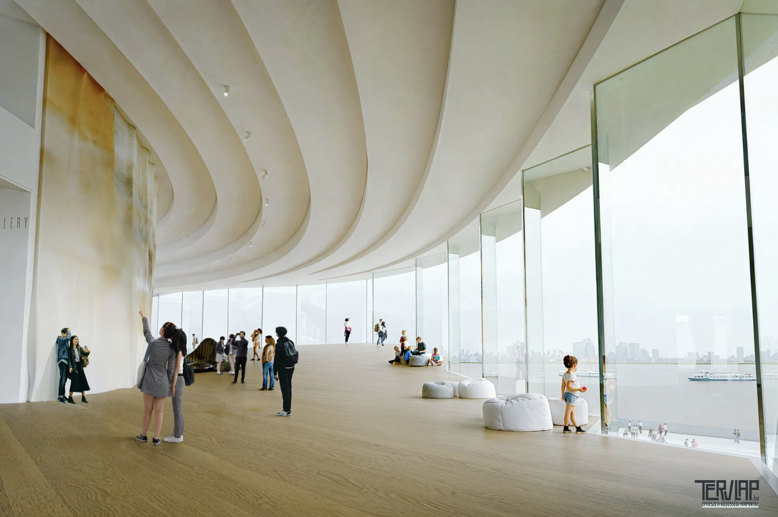 A földszinten a központi Kapu térbeli és szimbolikus összekötő elemként működik: a Qiantang folyó partja felé vonzza az embereket, és megállásra, elidőzésre, valamint annak monumentális jelenlétének megünneplésére hívja őket. Az épületen belül a fő kiállítóterek a magban helyezkednek el, körülöttük tágas közösségi terek kapnak helyet a társas együttlét, az oktatás, a párbeszéd és a közösségi események számára.