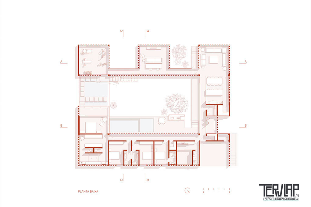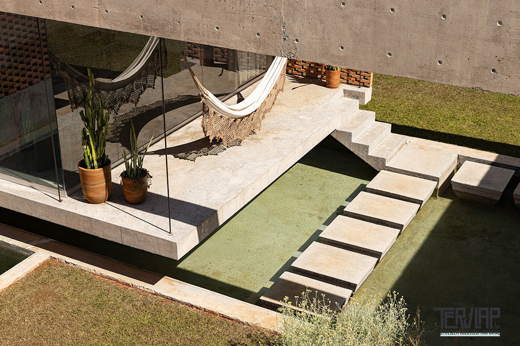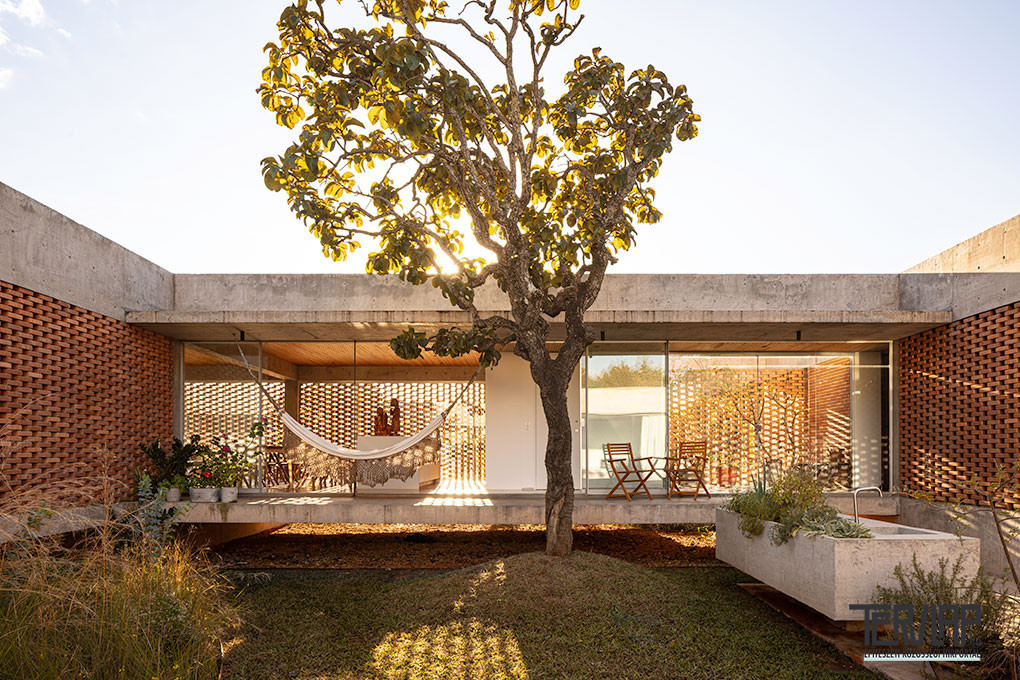 A nagyméretű telken, őshonos cerrado növényzettel körülvéve álló lakóépület párbeszédet folytat a természeti környezettel, és maximálisan elősegíti a belső és külső terek közötti kapcsolatot. A projekt egy központi udvar köré szerveződik, amely a ház „hátsó kertjeként” működik, összekapcsolva a közösségi és privát tereket, valamint koncentrálva a szabadidős funkciókat, amelyek mind látszóbetonból készültek, burkolat nélkül, hogy hangsúlyozzák az anyag folytonosságát és az építés őszinteségét.