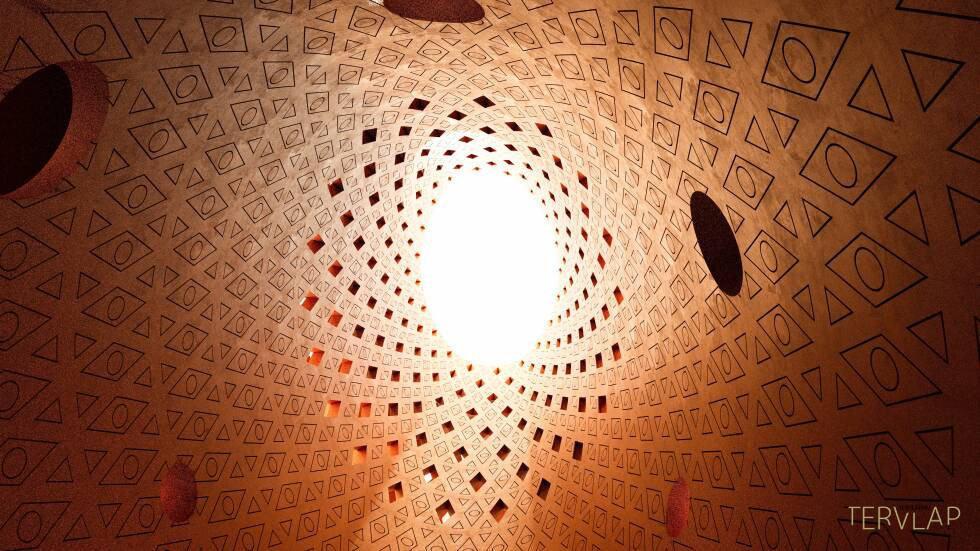A homlokzatot rácsozott, perforált takarólemezként képzelik el – ez az eszköz egyszerre ad árnyékot és elősegíti a természetes szellőzést, így csökkentve a gépi hűtés szükségességét. Tetőkert, belső udvarok és nyitott, fél-külső zónák alkotják a passzív klímastratégia fő elemeit: a zöld tetők és árnyas teraszok a helyi mikroklímát javítják, míg a perforált burkolat a napsugárzás elleni védelemből veszi ki a részét. A koncepció világosan kapcsolódik Kéré korábbi, közösségi és éghajlati érzékenységű munkáihoz.