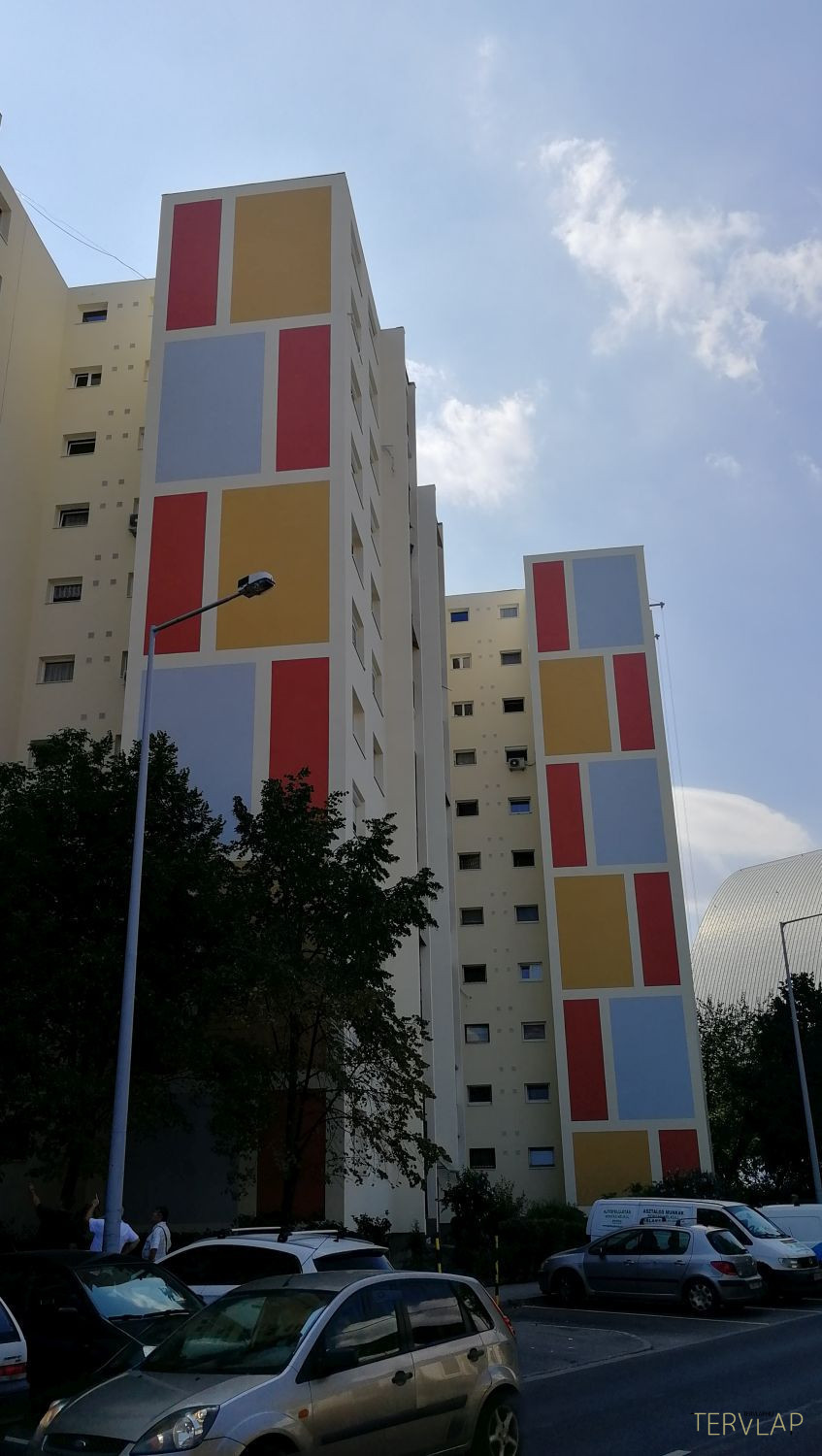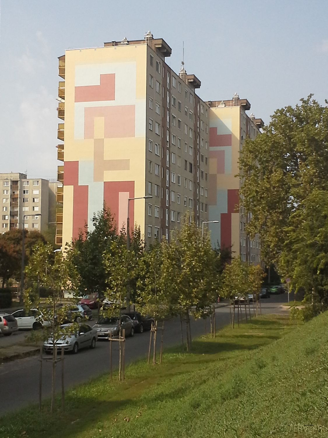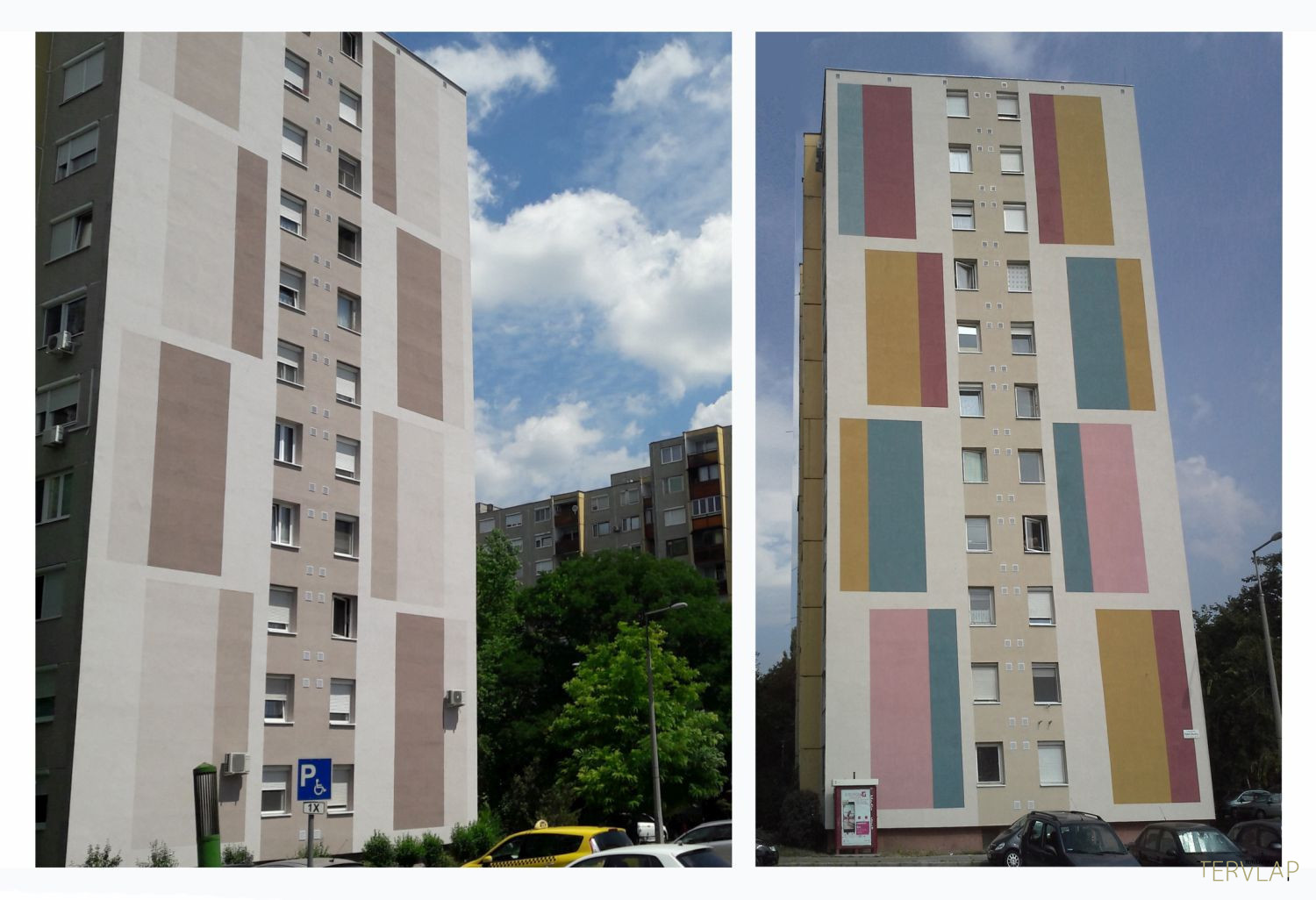 Nagy élmény volt számomra, amikor először dolgoztam panelépületen, olyan volt, mintha a város testébe kerültem volna művészként. Egyszer csak ott volt előttem egy akár 30 méteres felület – egy vászon, csak éppen betonból. És azt mondtam magamban: én geometrikus festő vagyok, és a festményem most ott áll a városban. A ház fala lett a képtér, az arány, a ritmus, a harmónia, amit addig vásznon kerestem.