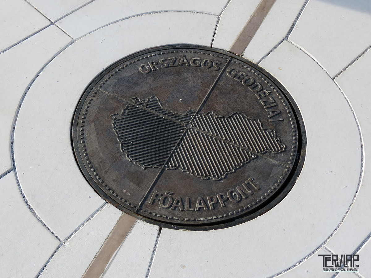 A Gellért-hegy parkjában bronzcsík jelöli Kelet- és Nyugat-Magyarország találkozásának vonalát.