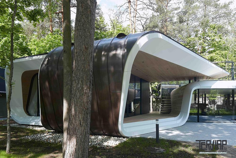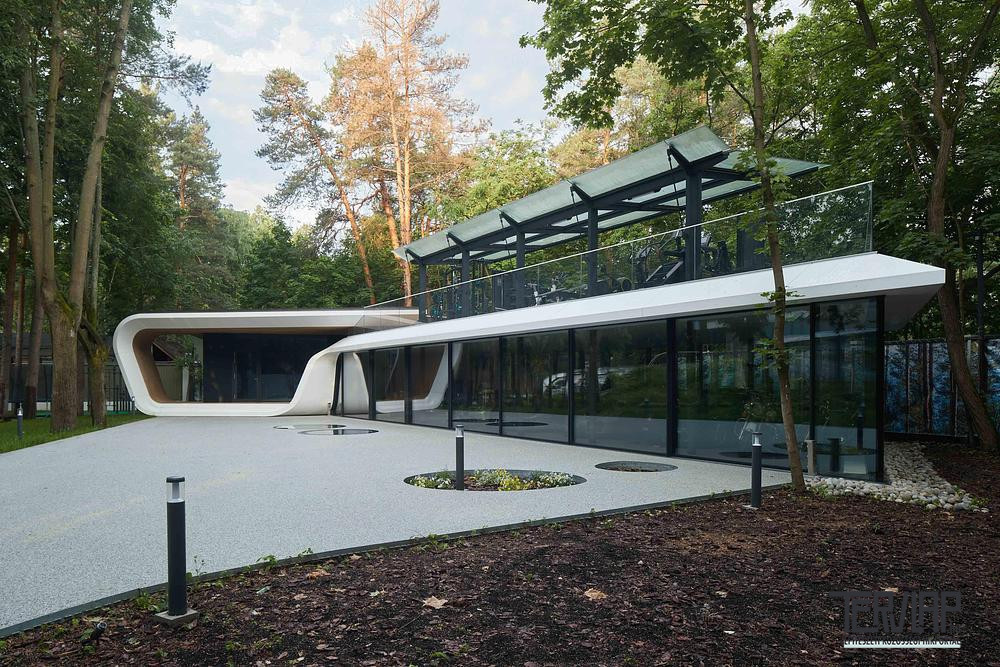 A Moszkva melletti védett parkban, erdős telken elhelyezkedő, 200 m2-es épület egy magánbirtok legújabb eleme, amelyet az ATRIUM még a 2000-es évek elején kezdett fejleszteni, és amely egy modern kúriát, valamint vendégházat is magában foglal. Az új garázs továbbviszi a korábban elindult építészeti koncepciót, ugyanakkor kortárs térszervezési megoldásokat és anyaghasználatot alkalmaz, ami nem teljesen egyedi az orosz főváros luxusingatlanjai esetében.