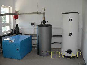 Az épület padló- és falfűtése (falhűtése) nedves kivitelű melegvíz-üzemű sugárzófűtés. A fűtés és hűtés hőtermelője egy földhős (geotermikus) hőforrású villamos hőszivattyú, amely működése alatt egyúttal a hmv-t is biztosítja (2. és 3. ábra).