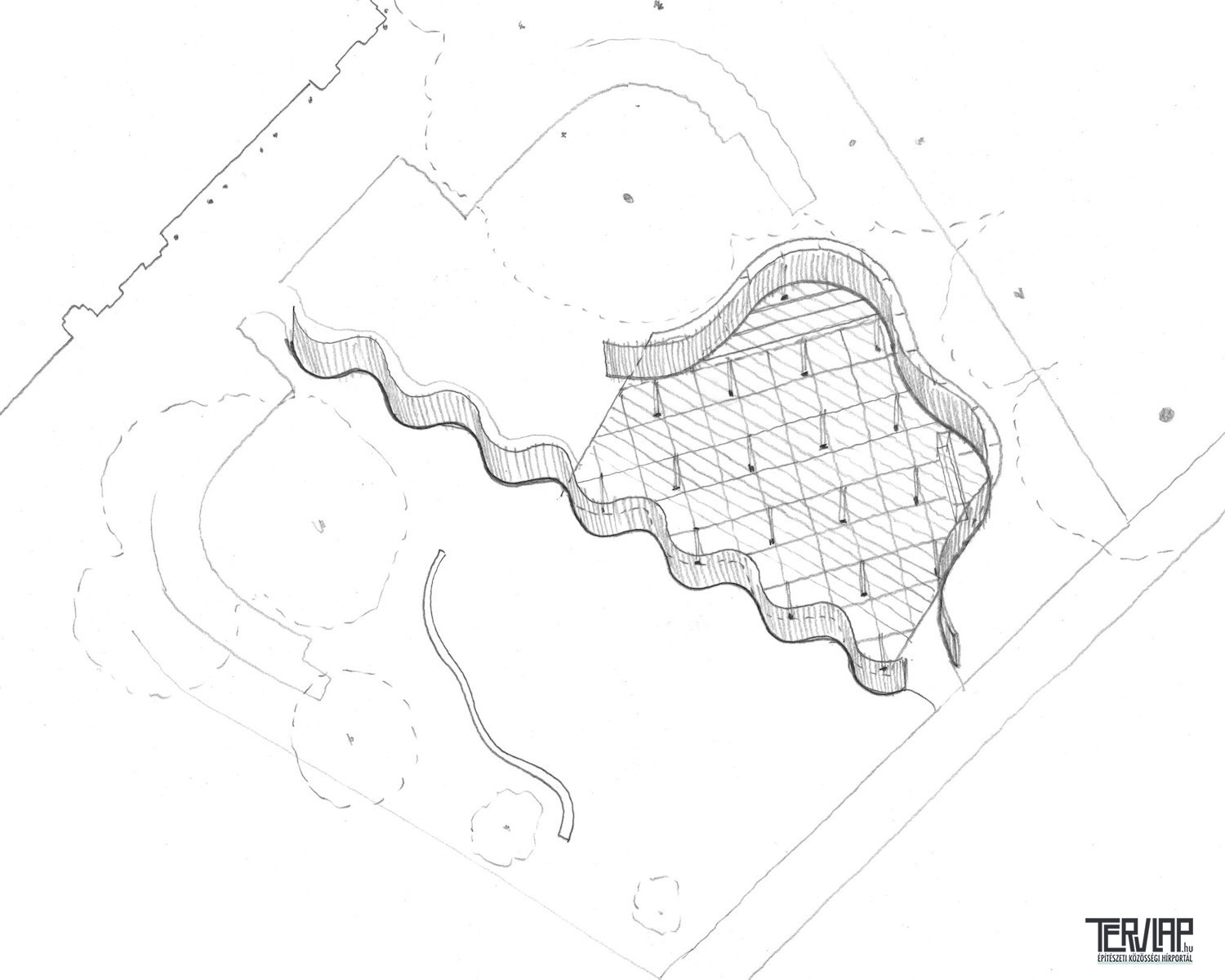 A természeti világ megidézéseként a projekt egy hullámzó fal formáját ölti, amelyet olyan eszközként fogtak fel a tervezők, amely egyszerre felfed és elrejt, alakítja a mozgást, szabályozza a ritmust, és keretbe foglalja a közelség, a tájékozódás és a megállás pillanatait.